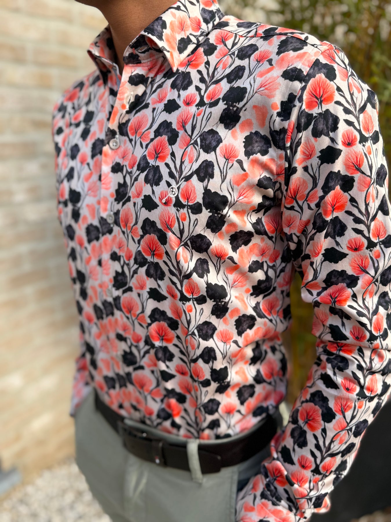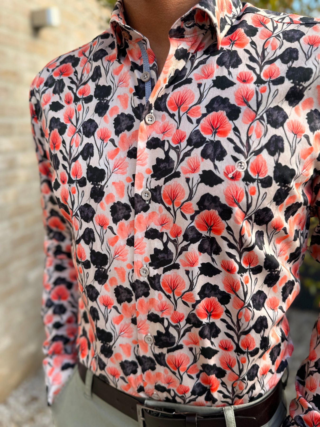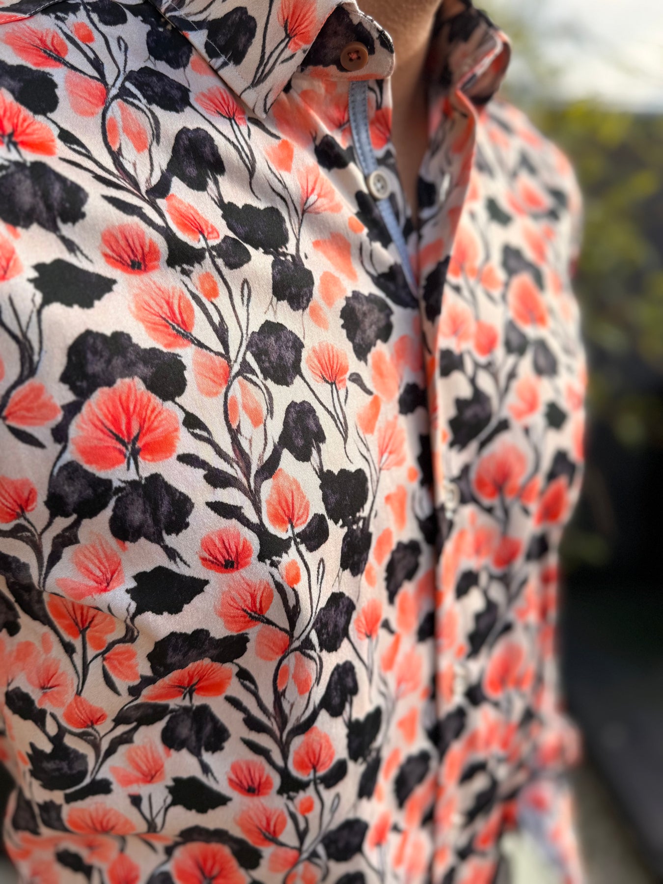 Chemise imprimée à col boutons "cachés" dans les tissus pour un meilleur maintien.