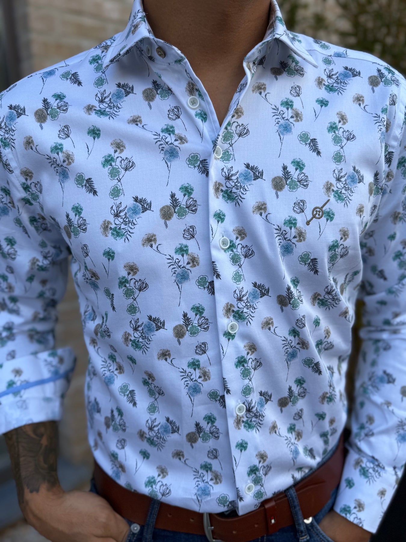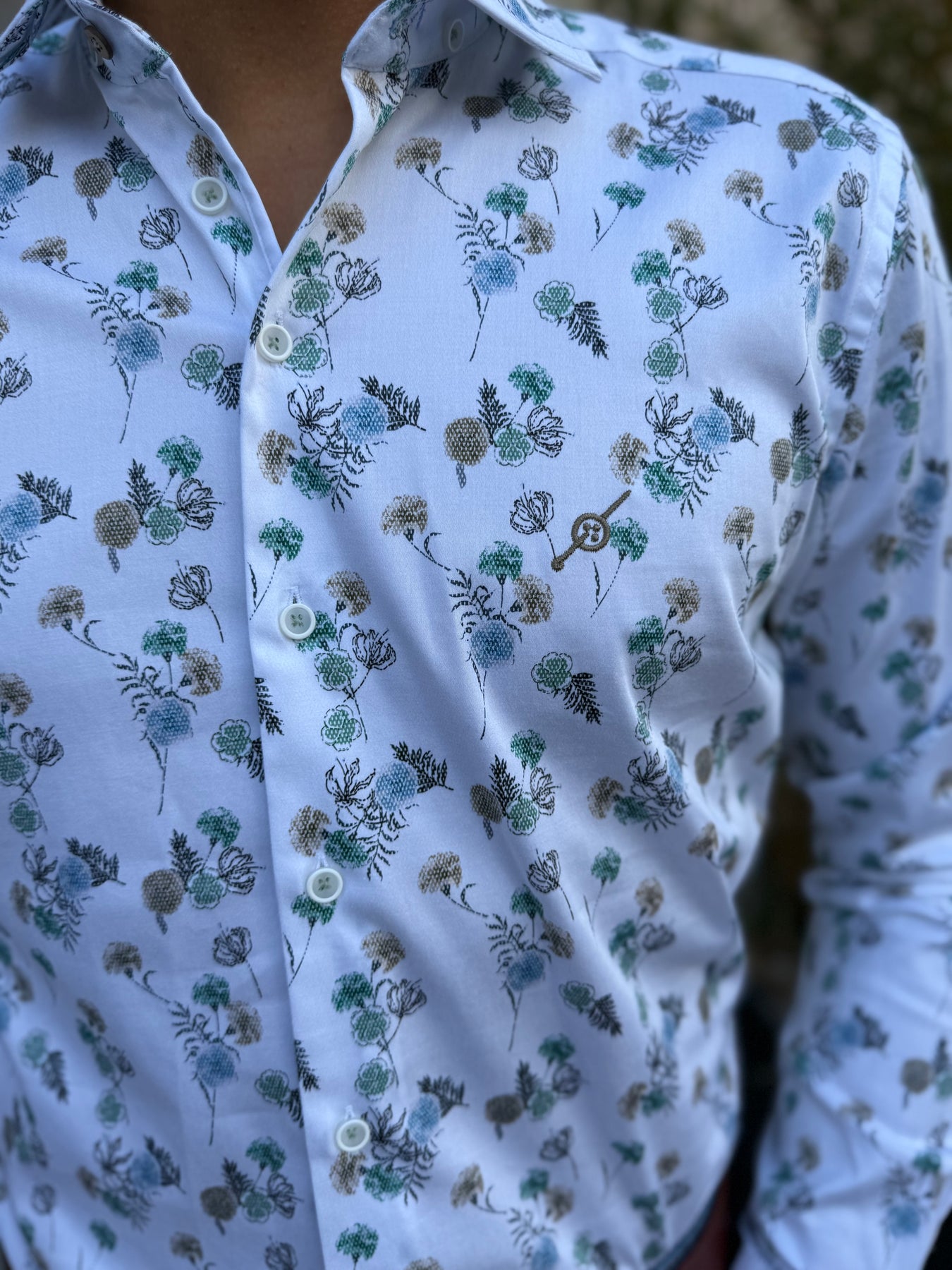 Chemise imprimée à col boutons "cachés" dans les tissus  pour un meilleur maintien.