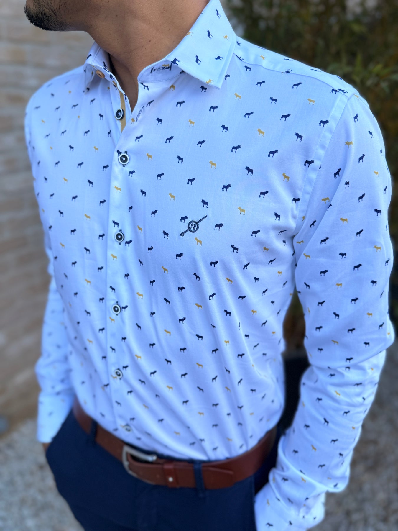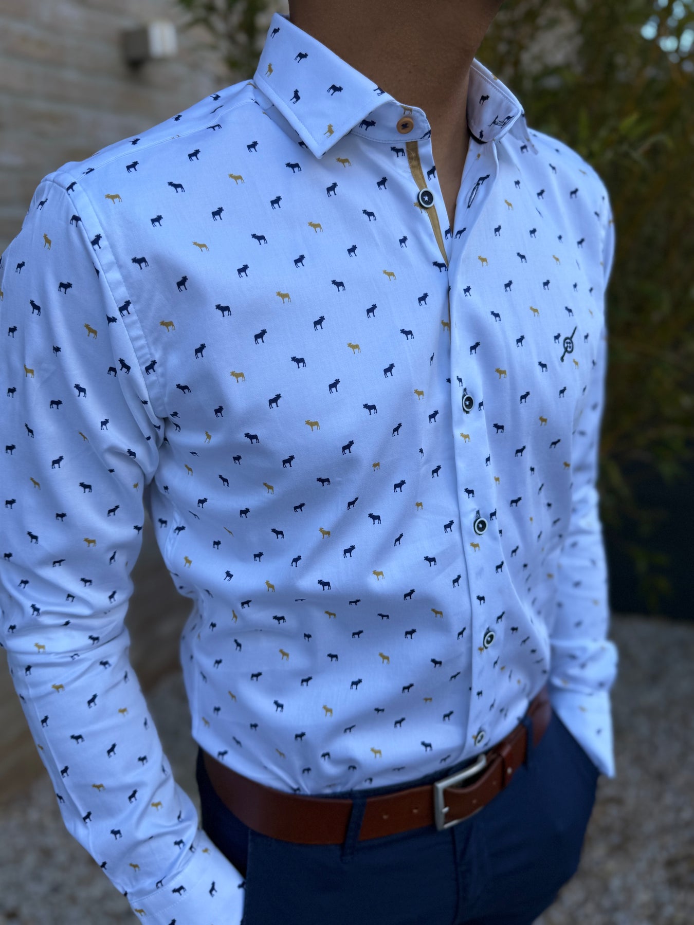 Chemise imprimée à col boutons "cachés" dans le tissus pour un meilleur maintien.