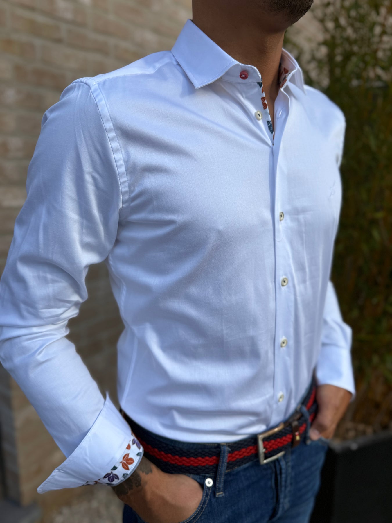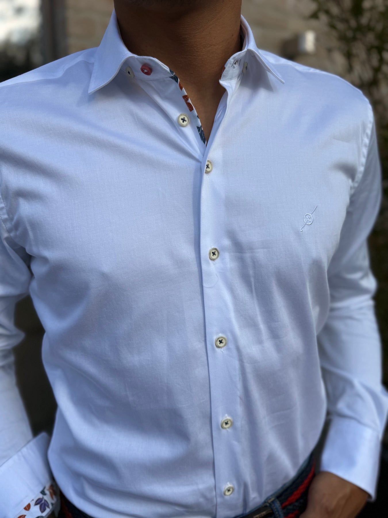 Chemise unie BLANCHE à col boutons "cachés" dans le tissus pour un meilleur maintien.